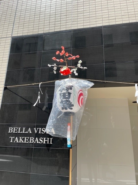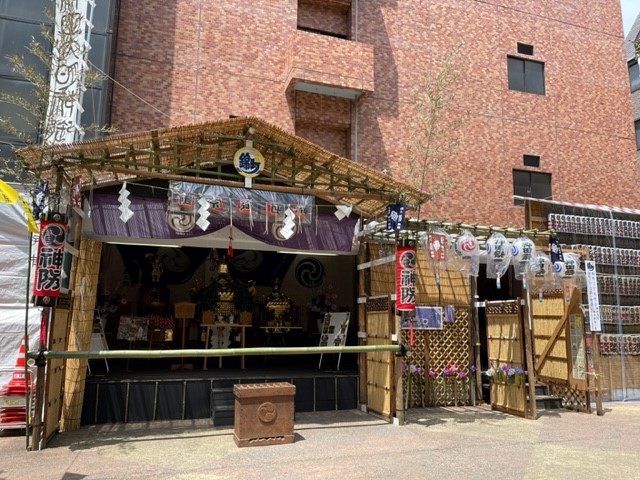 TURBO JAPANがあるビルの1階は、通常は毎日、キッチンカーが3台日替わりできて、ビルの利用者や近隣のサラリーマンがランチにくるのですが、今週は、そのエリアをお神酒所に換えて、神輿を飾っています。