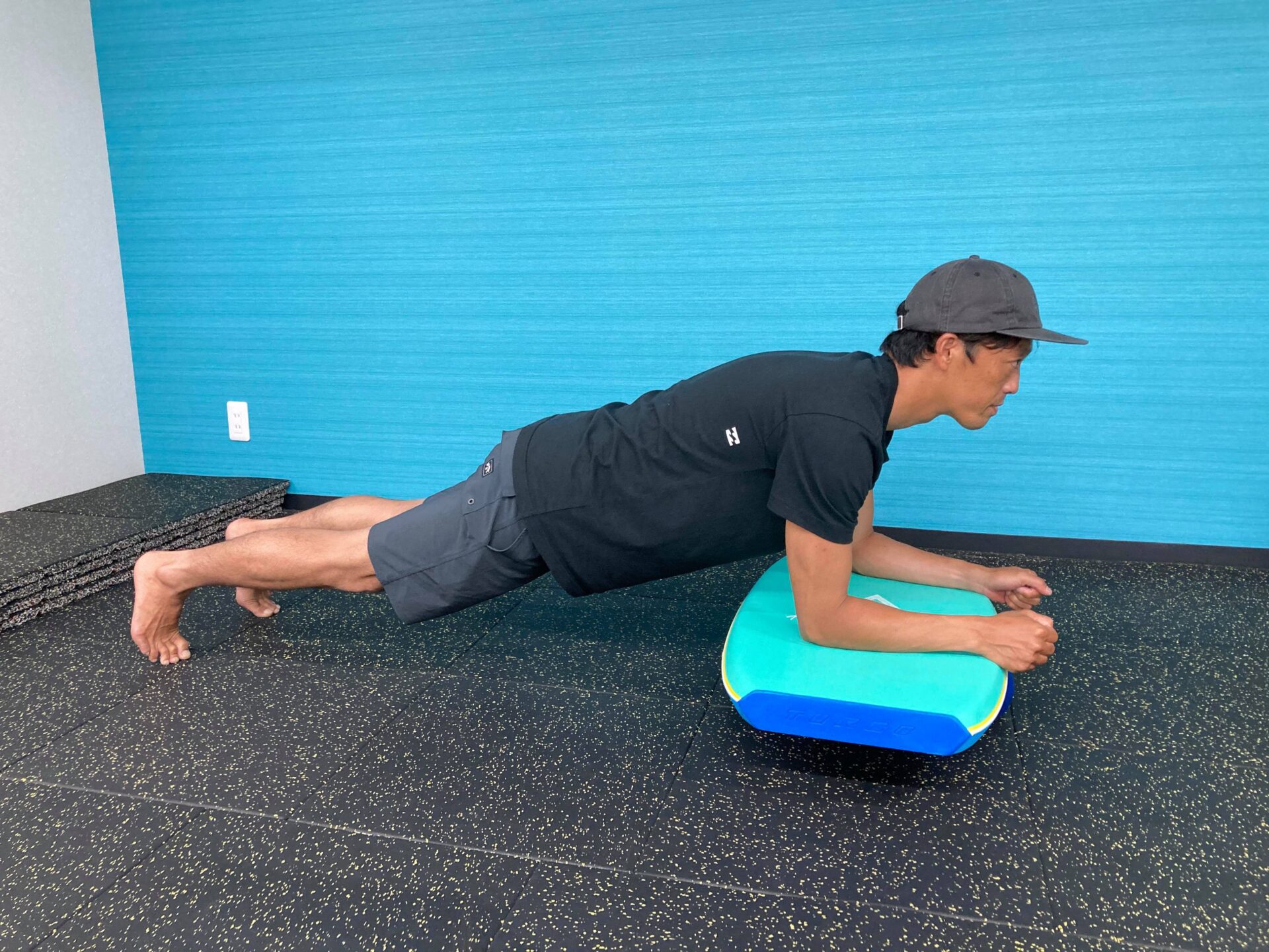 近藤選手はバランスボードを使用してトレーニングも行っています。
