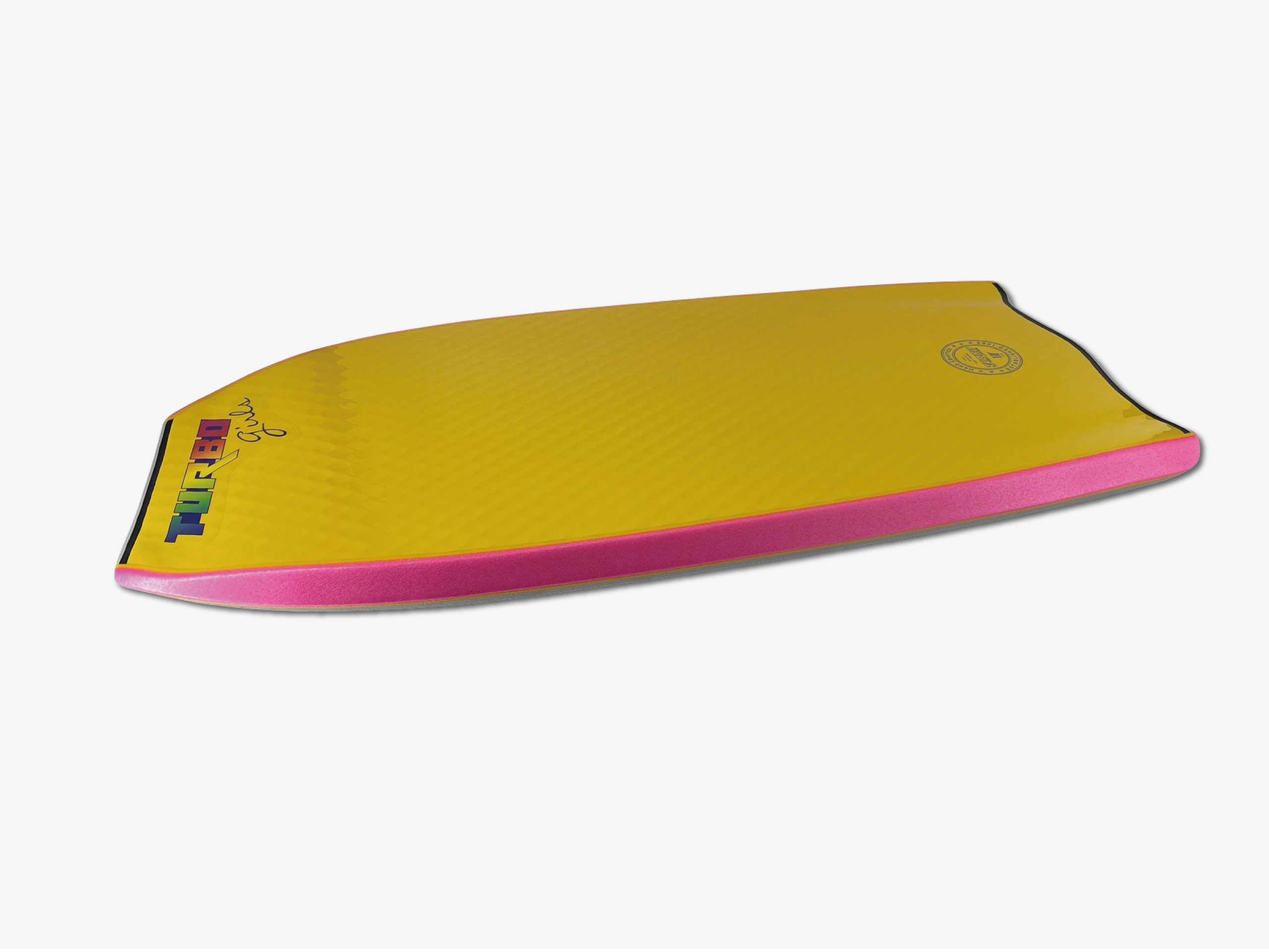 ゴルフボールの表面にも使用される高反発素材Surlynをボディボード用にアレンジを加えボトム素材として使用しています。