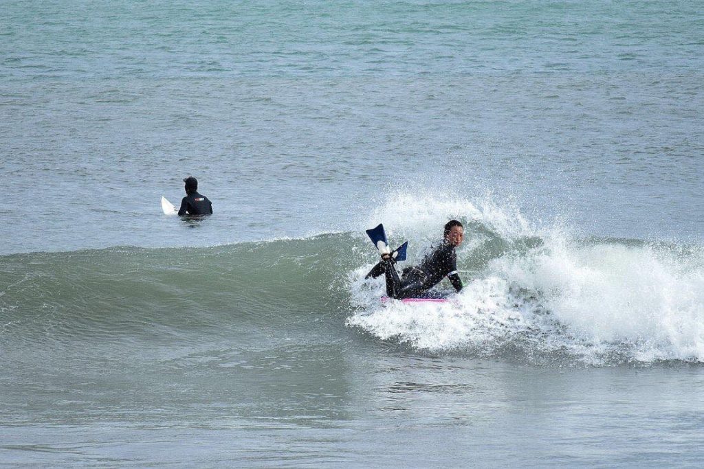 MBモデルのボードデザインは安定性にすぐれているのでしっかりとテールファーストで着水が可能になっています。