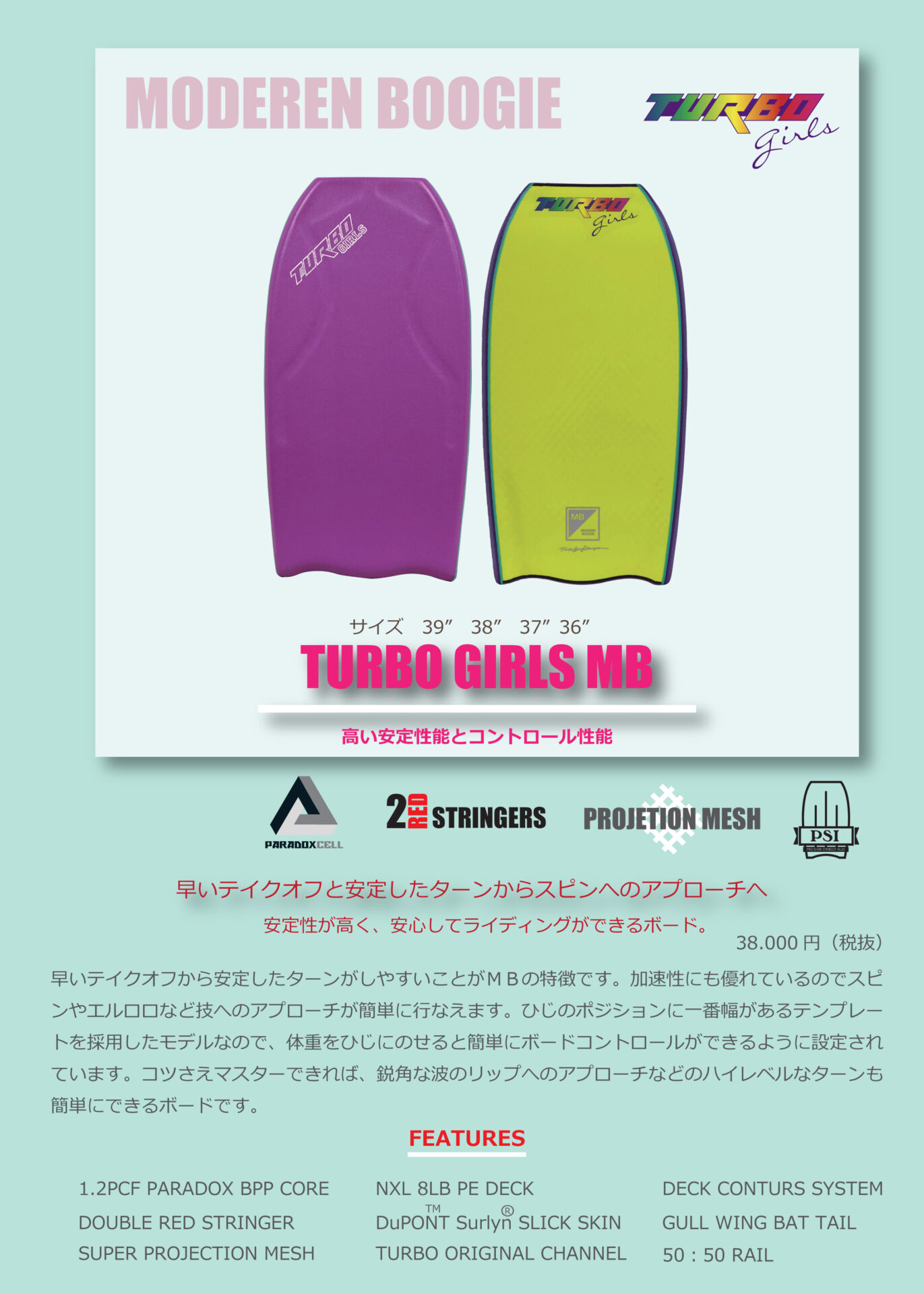 TURBO GIRLS BLOG TURBO WEBカタログ2018 テクノロジー レディースボード一覧 メンズボード一覧 TURBO GIRLS BLOG, TURBO SURF DESIGNS BLOG TURBOボディボード, カスタムボディボード, ターボガールズ 前山剛志スタイルとは? 【国内最大のアクションスポーツ展示会】 インタース... Glenn Taylor Custom Boards 京谷雄策のボディボードの楽しみ方 明けましておめでとうござます。 3/20.000ってなんの数字だかわかりますか? ターボボディボード展示会無事終了致しました。 野村祐子プロが来社してくれました。 XL-R8 CRESCENT &BAT TAIL 2017