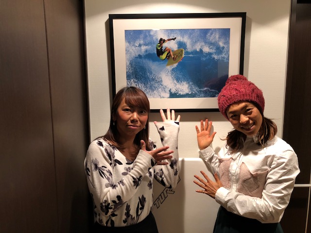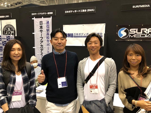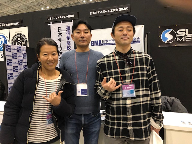 DAY2はTURBO チーム東京が来場 野村祐子プロ、松野薫プロ、大角地和美アマ そして、老舗サーフショップ足立区 ダックスの高橋オーナーもご来場頂きました!ありがとうございます。並び順は昨年と同じ安定の定位置です。