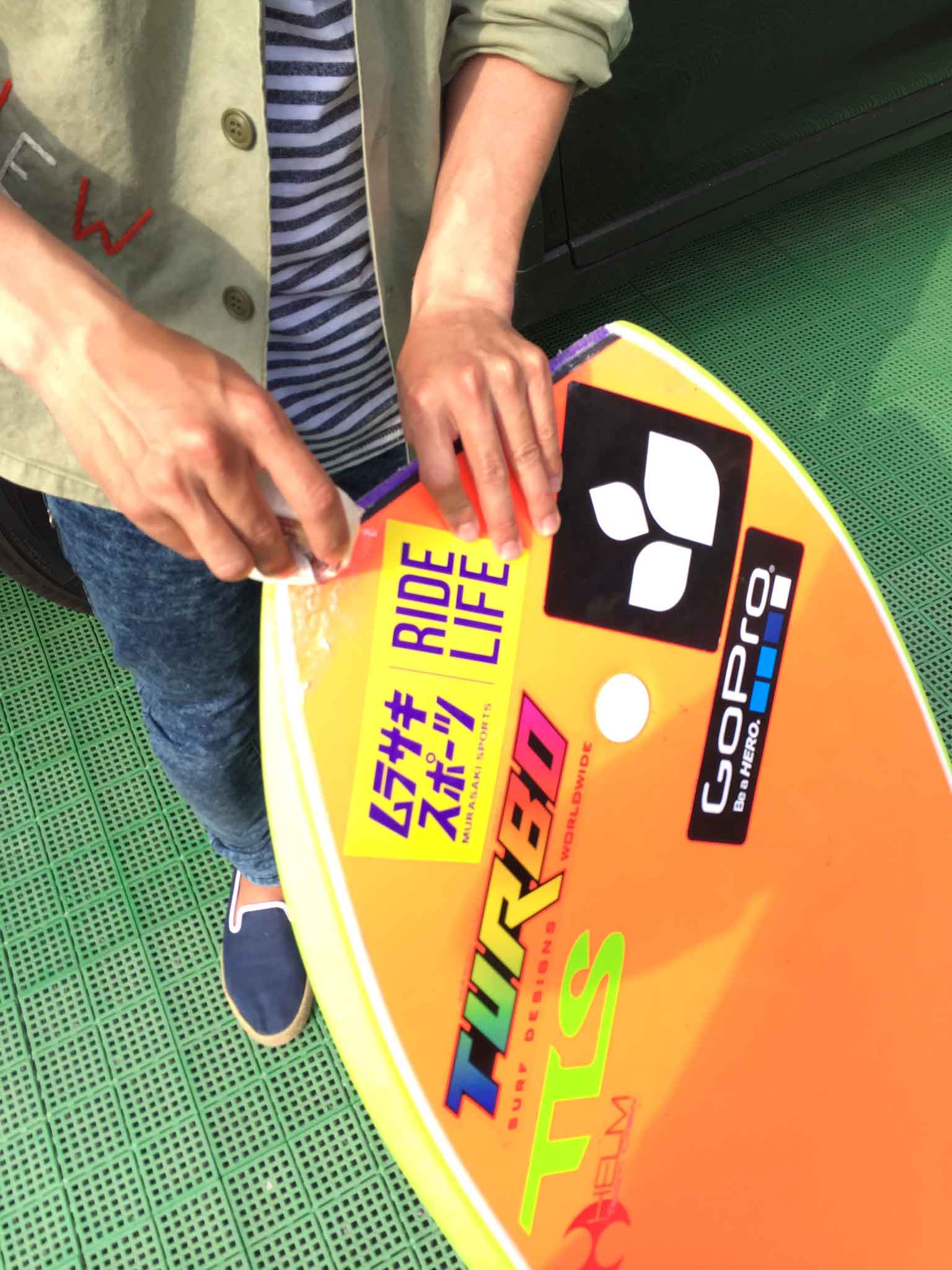 塗る位置は、デッキ面のノーズからスタンスを取った時に肘が付く少し下までぬりましょう!